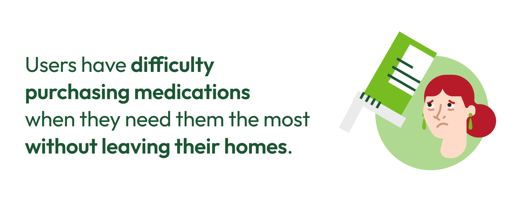 From this, we defined the problem statement: users face significant difficulties purchasing medications when they need them the most, particularly in situations where going to the pharmacy is inconvenient or harmful to their health. This highlighted the need for more accessible and flexible subscription-based solutions.