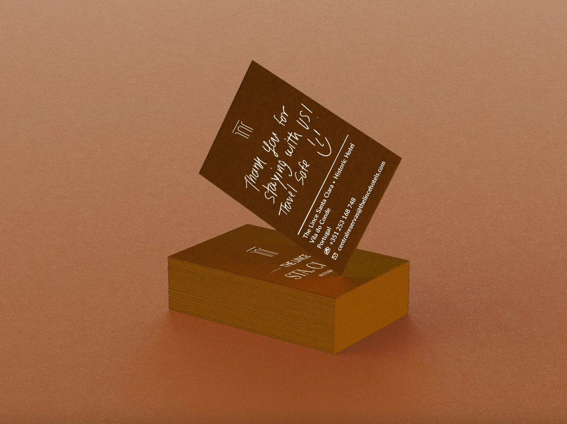 For the rebranding of The Lince Santa Clara, located in Vila do Conde within a historic monastery, the visual identity was carefully developed to reflect the hotel’s heritage and setting. The chosen copper tones evoke the warmth and timelessness of the convent’s architecture, while the logo variations, both horizontal and vertical, ensure flexibility across different applications.